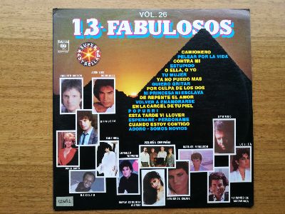 |   | AJ_LP_0681 | Camionero - Ni princesa ni esclava - Pelear por la vida - Por culpa de los dos - Estúpido - Ya no puedo más - Popurri (Esta tarde vi llover, Esperaré, Perdóname, Cuando estoy contigo, Adoro, Somos novios) | 13 Fabulosos - Vol. 26 |  | Details |