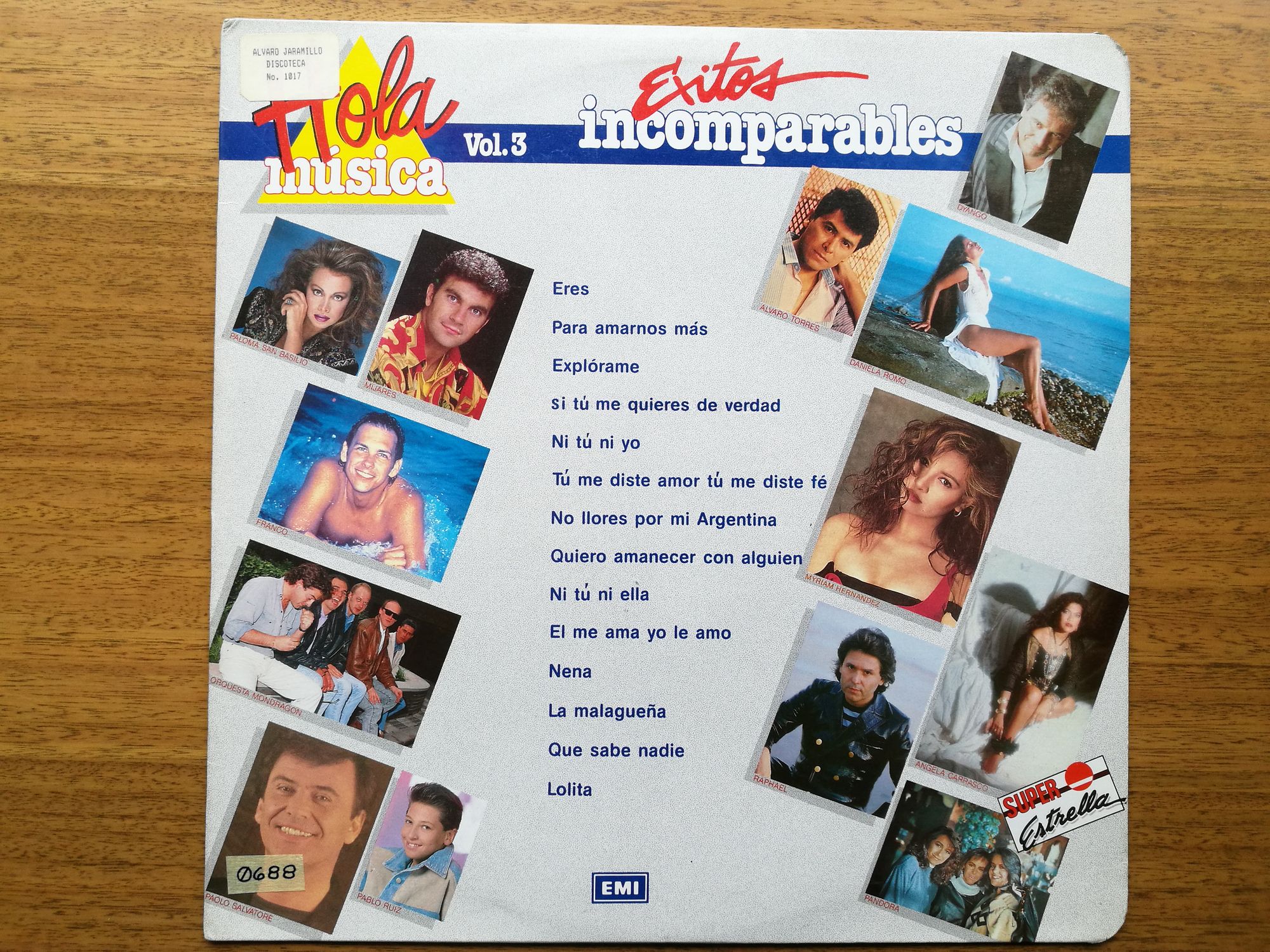 |   | AJ_LP_0688 | Eres - Para amarnos - Explórame - Si tú me quieres de verdad - Ni tú ni yo - Tú me diste amor, tú me diste fe - No llores por mí Argentina | Éxitos incomparables - Vol. 3 |  | Details |